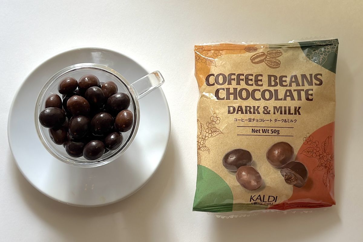 「オリジナル コーヒー豆チョコレート ダーク&ミルク」50gは、コーヒー豆を販売するカルディコーヒーファームならではのオリジナルチョコレート。