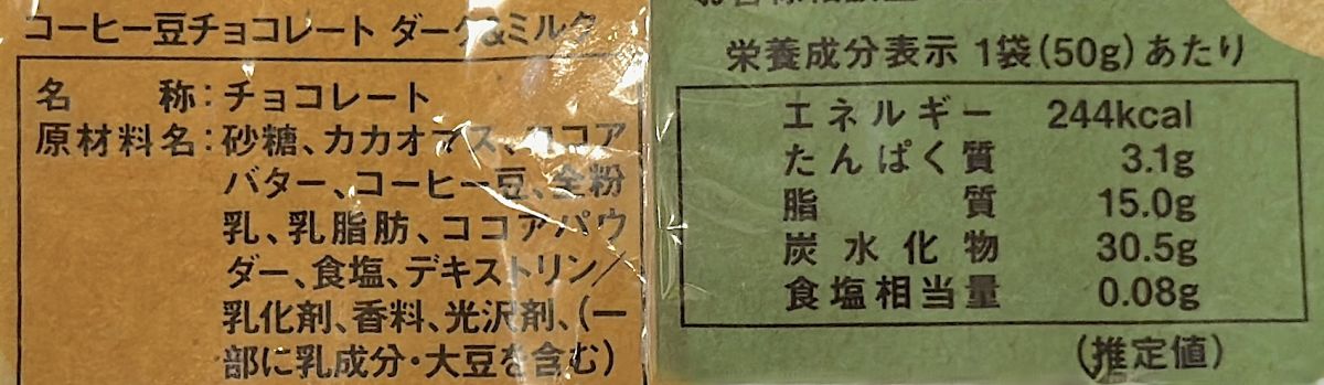 コーヒー豆が丸ごとIN!「オリジナル コーヒー豆チョコレート ダーク&ミルク」348円