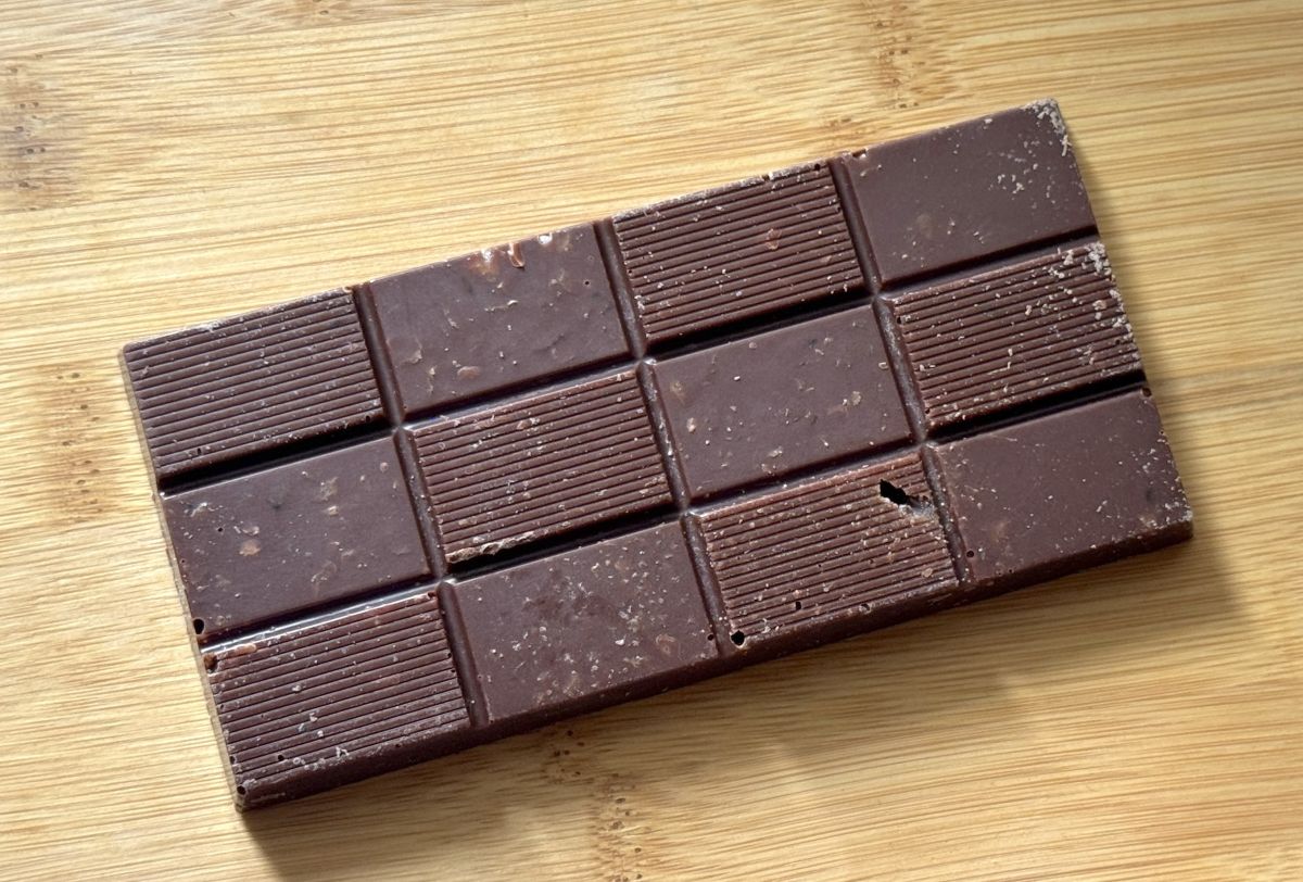 植物油脂不使用のガーナ産カカオ50%を使用したミルクチョコレートに、口の中でパチパチとはじける食感のキャンディが散りばめられているとのこと。