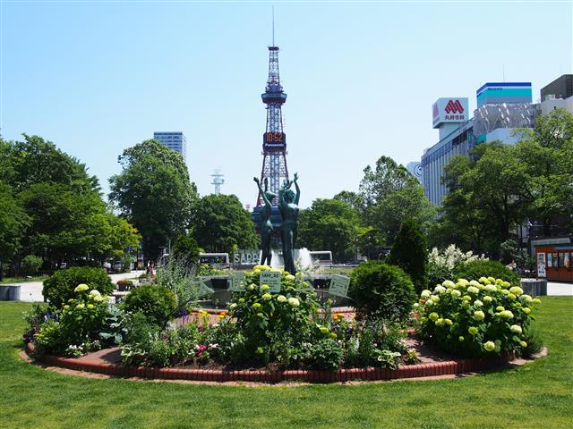 札幌中心部の大通西1丁目から大通西12丁目まで東西に横切る全長1.5kmの緑地帯で、街を区画する南北の基点。明治4年(1871)に市街の火防線として造られたのが始まりです。花・つどい・フロンティアなど5つのテーマと5つのゾーンで構成された園内には、花壇や噴水、多彩な彫刻作品が点在。15分間で16パターンの変化が楽しめる噴水や、イサム・ノグチ設計の滑って遊べるモニュメント『ブラック・スライド・マントラ』、札幌出身の彫刻家・本郷新の『泉の像』などもあります。4月下旬~10月上旬には、焼きとうきび(トウモロコシ)を売るとうきびワゴンも出店。ビアガーデンやさっぽろ雪まつりなど、季節ごとのイベント会場としても活用されています。
