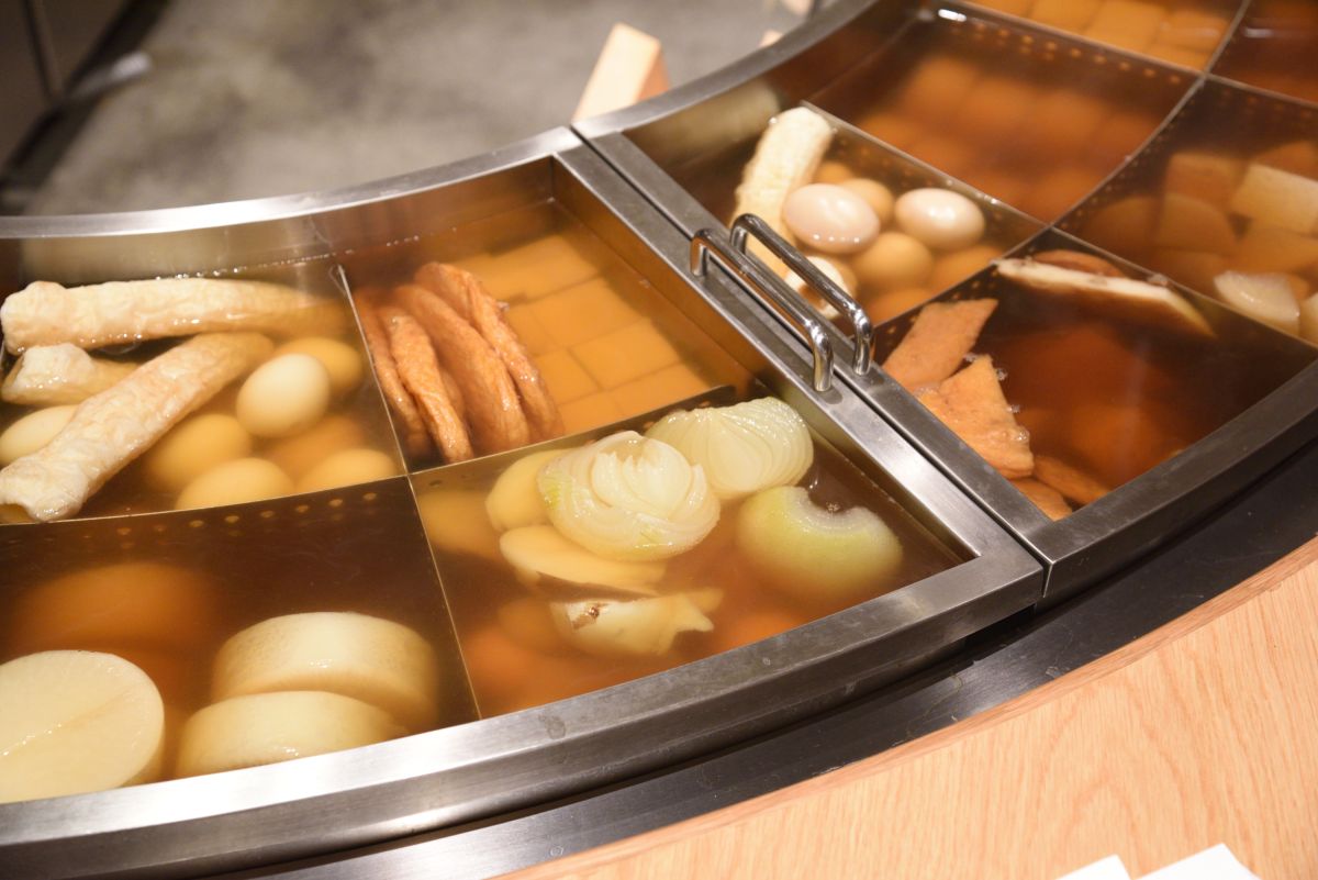 おでんは利尻昆布、花鰹、まぐろ節から取った澄んだだしが決め手。大根や玉子、白ちくわ、焼き豆腐に加え、つなぎを使わない魚のすり身100%の練り物も人気です。すべてグルテンフリーなのも安心できるポイント。