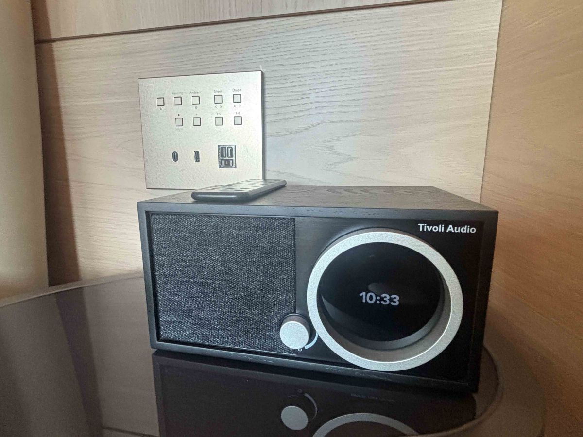 ベッドサイドには自由に使えるワイヤレススピーカーも。お部屋のライティングはスイッチで調整することができます。