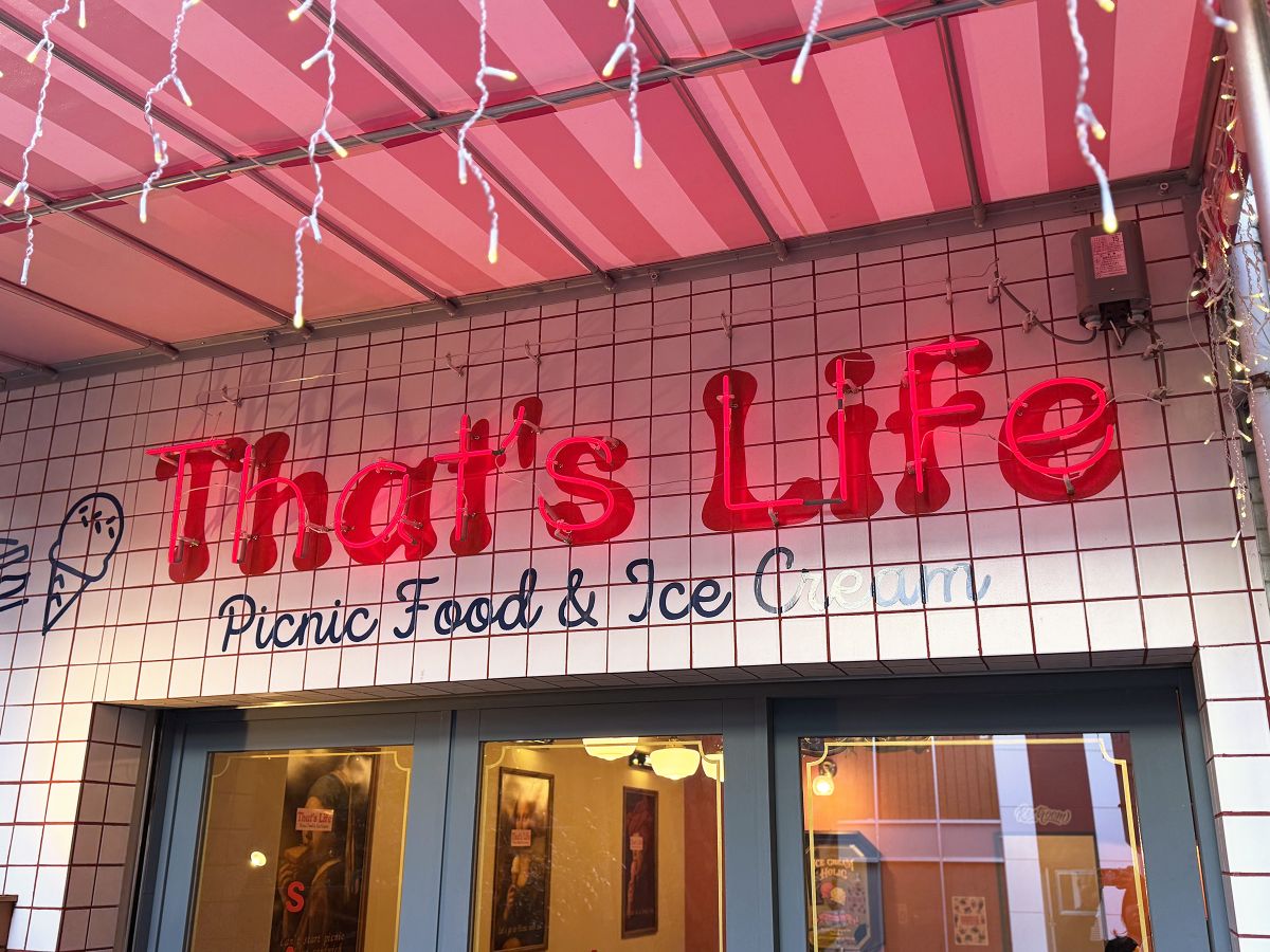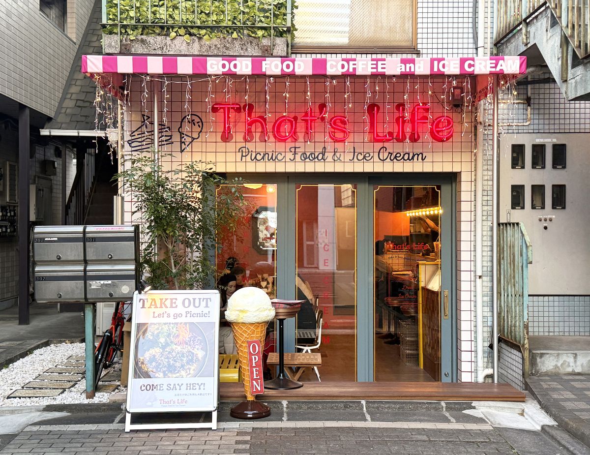 JR総武線・吉祥寺駅から徒歩約3分のところにある、カフェレストラン「That’s Life(ザッツ ライフ)」。吉祥寺で人気の「バーガー喫茶 ちるとこ」の姉妹店です。「井の頭公園」からすぐ近くの場所にあり、赤いネオンの看板や大きなアイスクリームのオブジェがとっても可愛い!