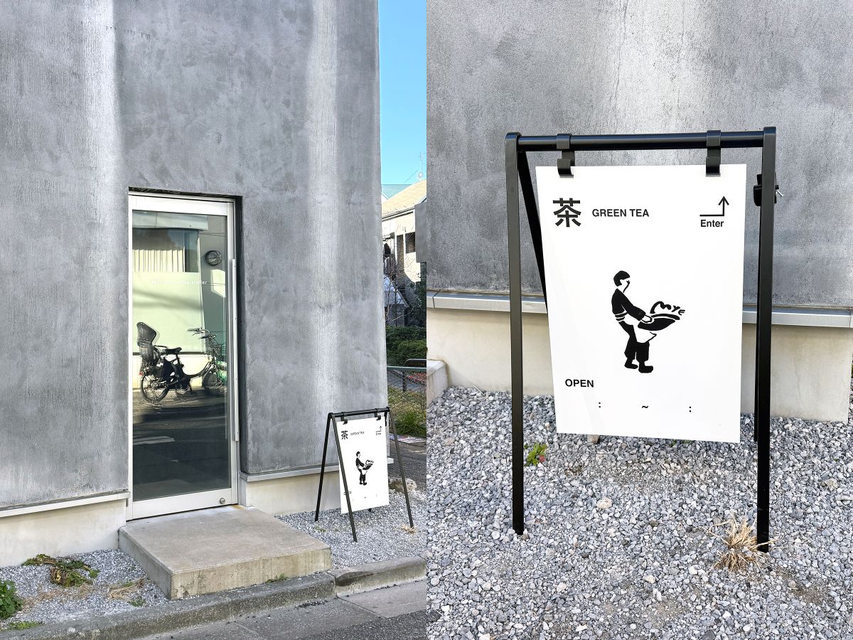 小田急線豪徳寺駅から徒歩約2分のところにある「MYE blend tea atelier」。シックな建物がアトリエを想像させる、全く新しいお茶屋さんです。店名の”MYE”は昔ながらのお茶道具、”箕(み)”に由来しているのだとか。看板にはそんな箕をふるう茶師のイラストが描かれています。