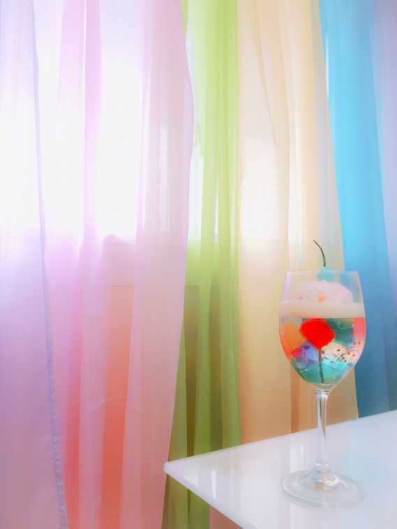 パステルカラーのレインボーカーテンと一緒にクリームソーダキャンドルを撮るとかわいい!