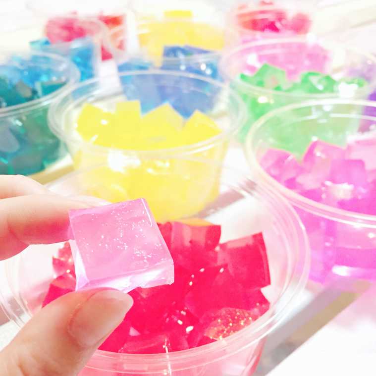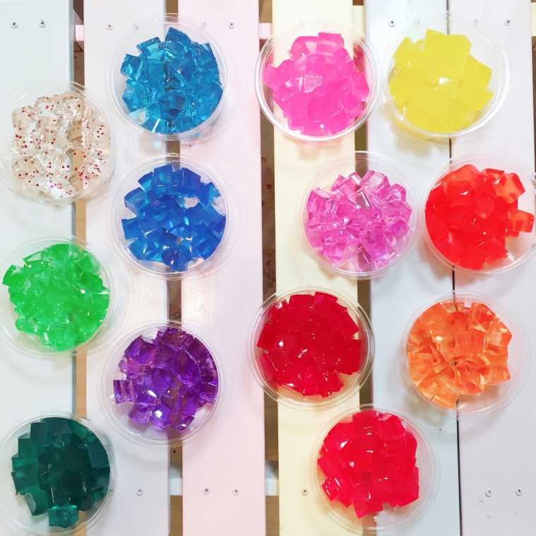 まずは、色選び。いくつものカラフルな色の氷パーツがあります。多色にしてもよし、グラデ―ションでもよし。その日の気分で選べます。