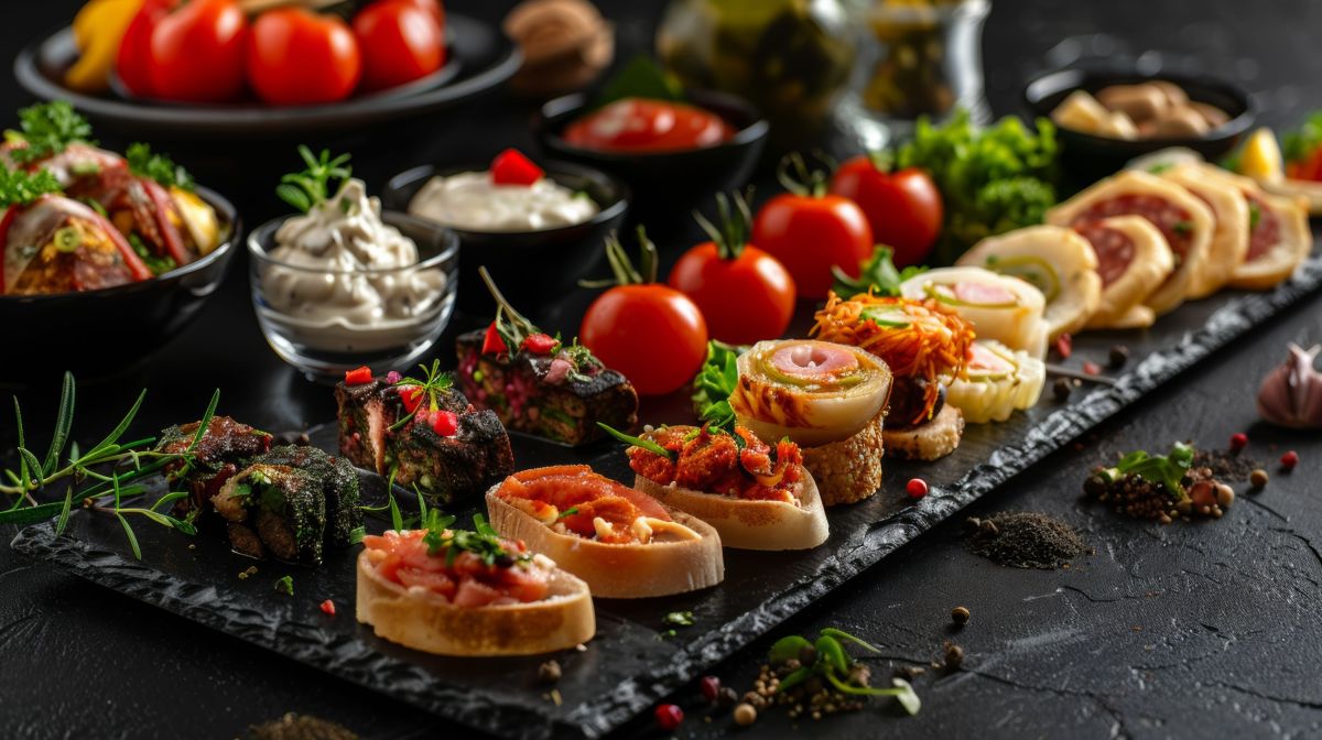 日本代表が大会で対戦する各国の料理を一つのプレートにまとめた一品。