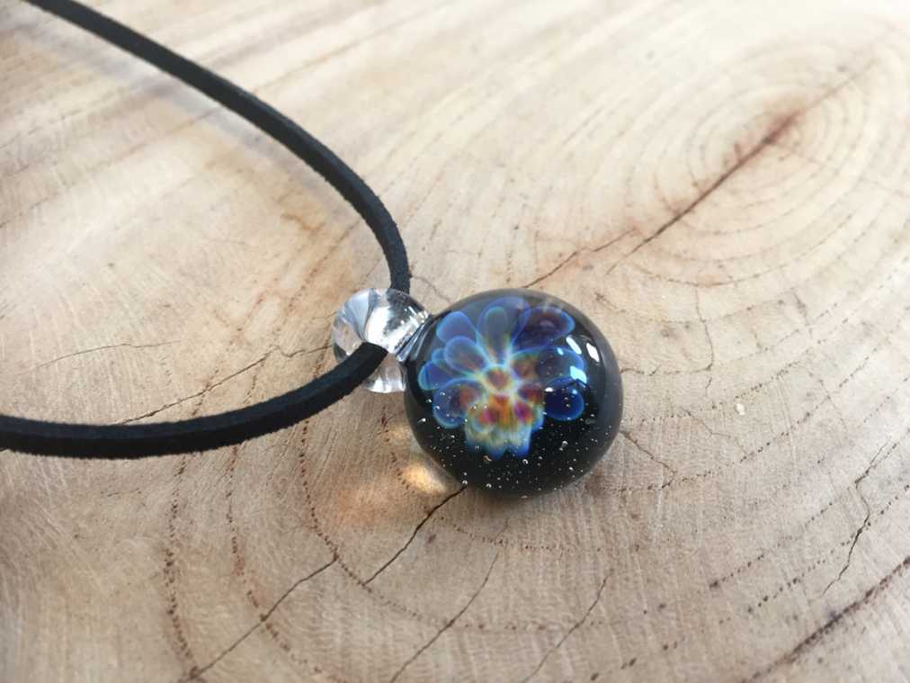 開始から1時間で完成!光の当たり具合によって表情が変わる、幻想的なアクセサリーができました。ペンダントのほかに、置物やビー玉も作れます。大切な人へのプレゼントにもおすすめです。