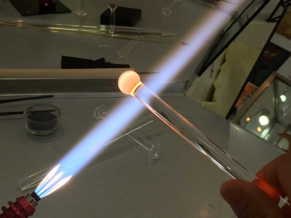 最初は酸素バーナーの勢いにかなりビクビクしてしまいますが、説明を聞きながら作業をしているとだんだんと慣れてきます。ここからしばらくバーナーでの作業になるので、説明やアドバイスはきちんと聞いて安全に作業してくださいね。