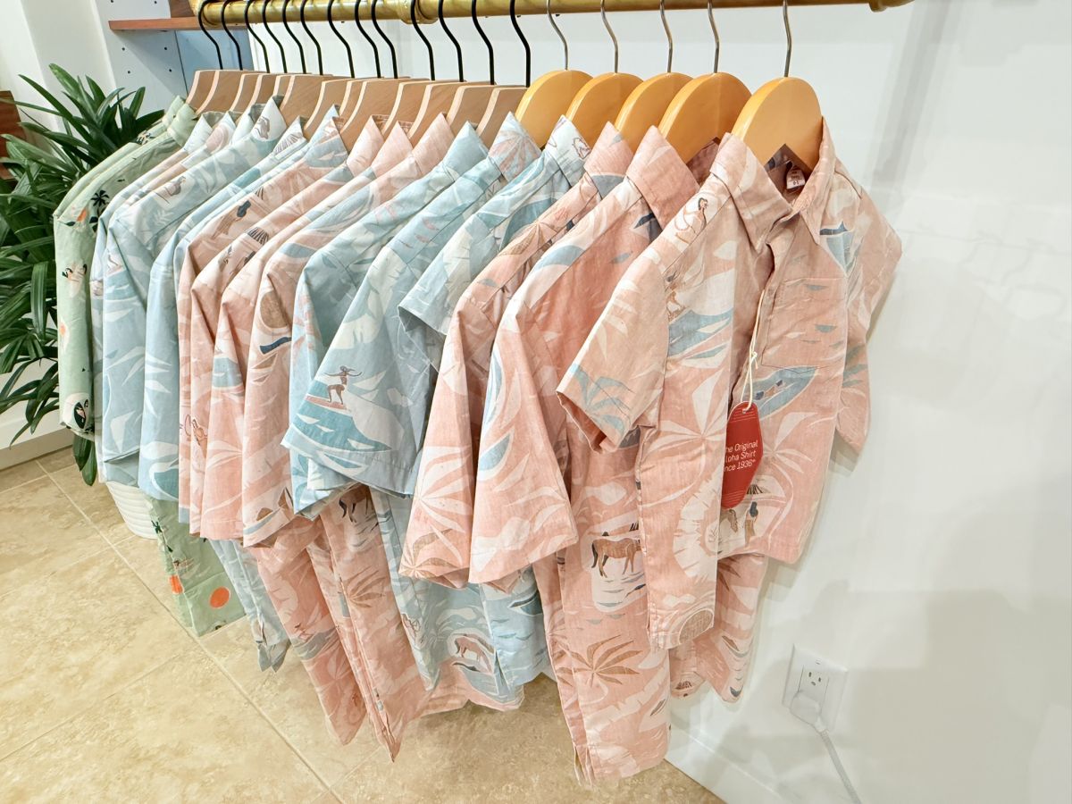 店内は明るく開放的な雰囲気で、商品を手に取ってゆっくり選べます。家族でお揃いのアロハシャツを購入するのもおすすめです。