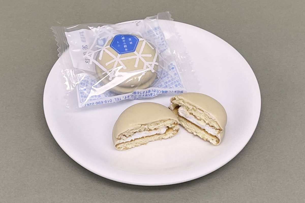 クッキーに生マシュマロをはさみ、チョコレートでコーティングしたスイーツ「八幡平の樹氷」は、昭和36年に誕生し長年愛されてきた人気商品。今から6年前にリニューアルしましたが、元の商品の復活を望むお客さんの声に応え、昔から愛されてきた味を復刻。1箱6個入りで、ひとつずつ個包装になっていて、ギフトにもぴったりです。