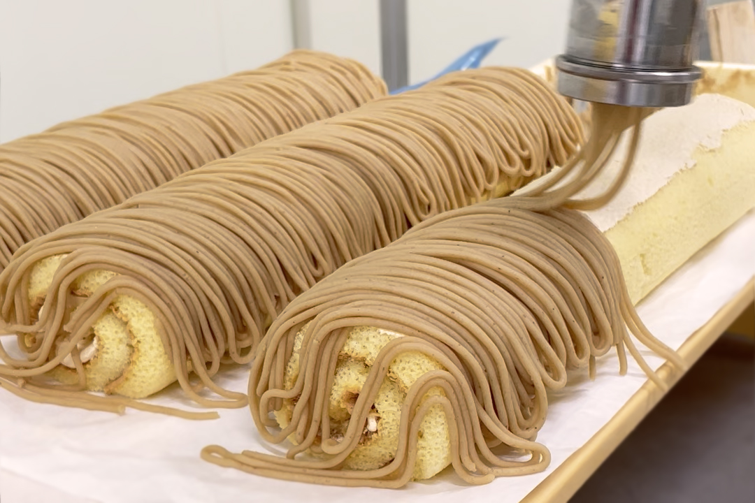 ロールケーキの上にのっているモンブランクリームは、茨城県産の和栗ペーストと手亡豆(てぼうまめ)を原料にした白あん、フランス産のマロンクリームをミックスしています。3つの素材が合わさることで、栗のうまみだけでなく、白あんの上品な豆の風味も感じることができ、渋すぎず口あたりのよい味となっています。