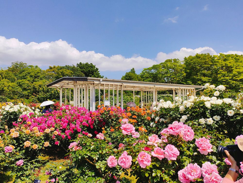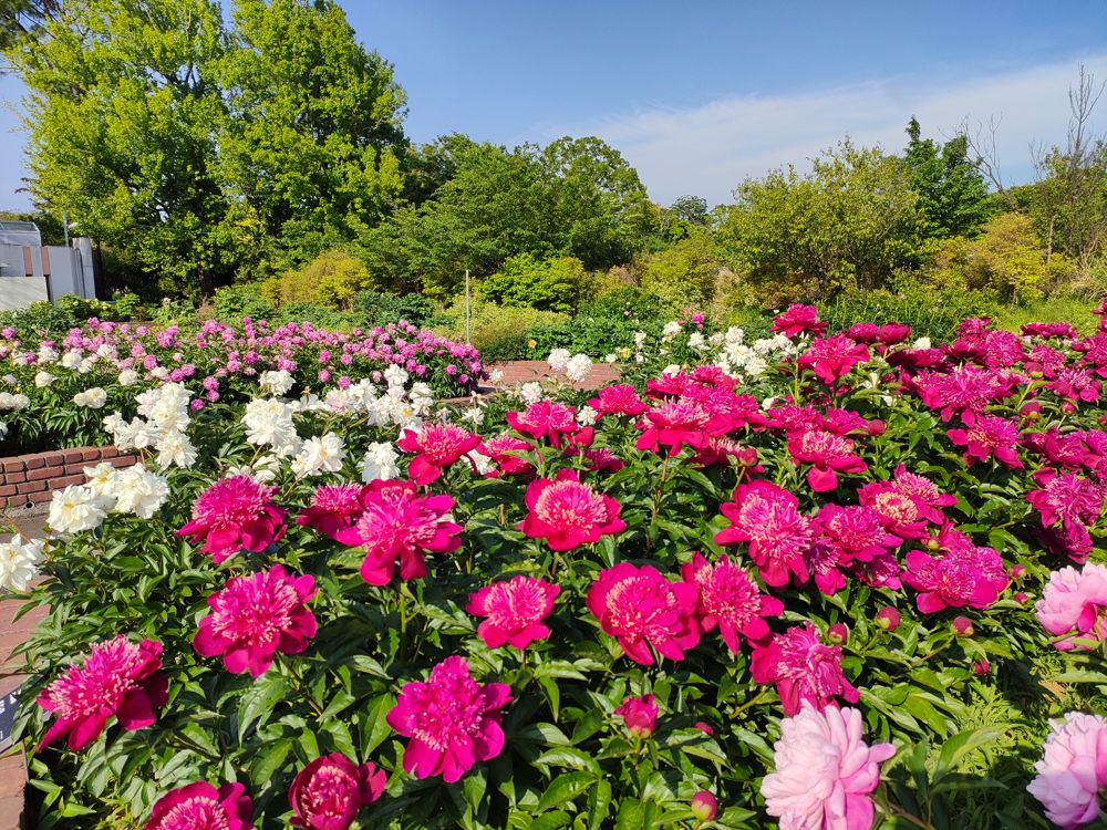 その他、約370品種1200株が植栽されたバラ園も壮大。5月中旬〜7月上旬、10月中旬〜11月中旬に見頃を迎え、シャクヤク園とともに二枚看板になっています。