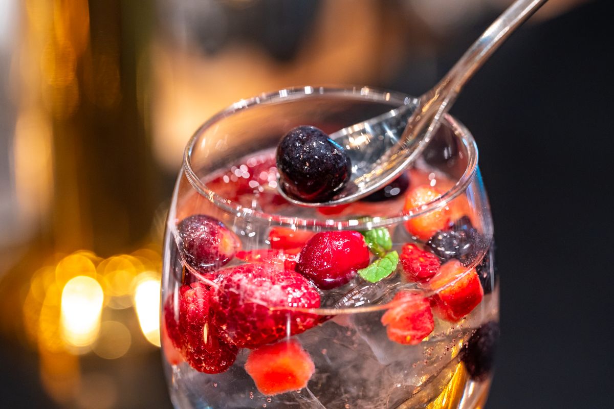 特に注⽬が「ミックスベリー スパークリング」550 円。スパークリングワインにカラフルなミックスベリーが⼊った⾒た⽬にも華やかな1杯で、⼥性や若者に⼤⼈気だそう。思わず写真を撮りたくなります。
