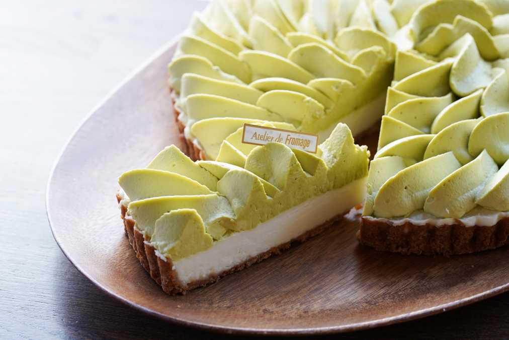 新緑の「葉」をイメージした、チーズタルト「ピスタチオクリームとリコッタムースのタルト」500円/1カット。レモンカードの爽やかな酸味と風味が口の中に広がります。テイクアウトのみの販売。【アトリエ・ド・フロマージュ】