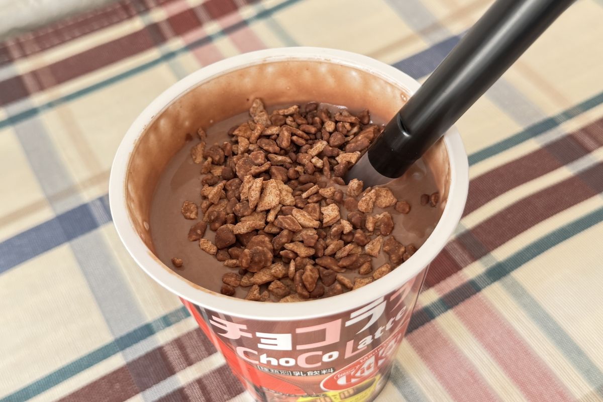 「チョコラテ made with KITKAT®」は、その「キットカット」の味をイメージしたカップタイプのチルド飲料です。