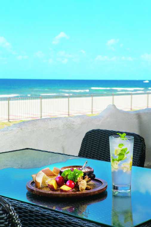 店名の通り立地は浜辺。海との距離はほぼゼロというまさに理想的な海カフェです。特等席は海が一望できるカウンター。メニューは、自家製パンを使った沖縄フルーツと野菜のカンパーニュサンド594円や琉球花紅茶540円など。