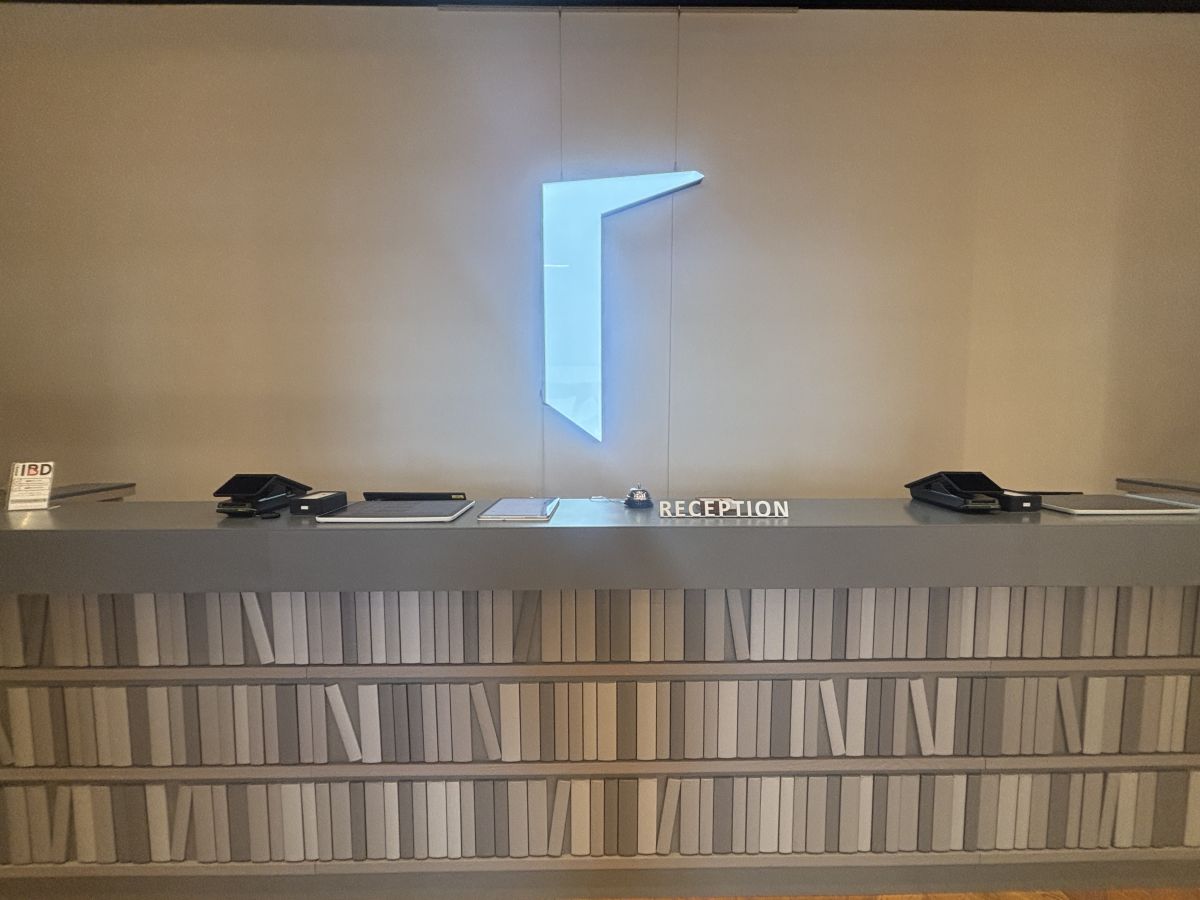 「the gate」の物語性に満ちた不思議な世界観を楽しんだら、本棚をモチーフにしたデザインがかわいいフロントへ。スタッフに案内してもらい、チェックインを済ませます。