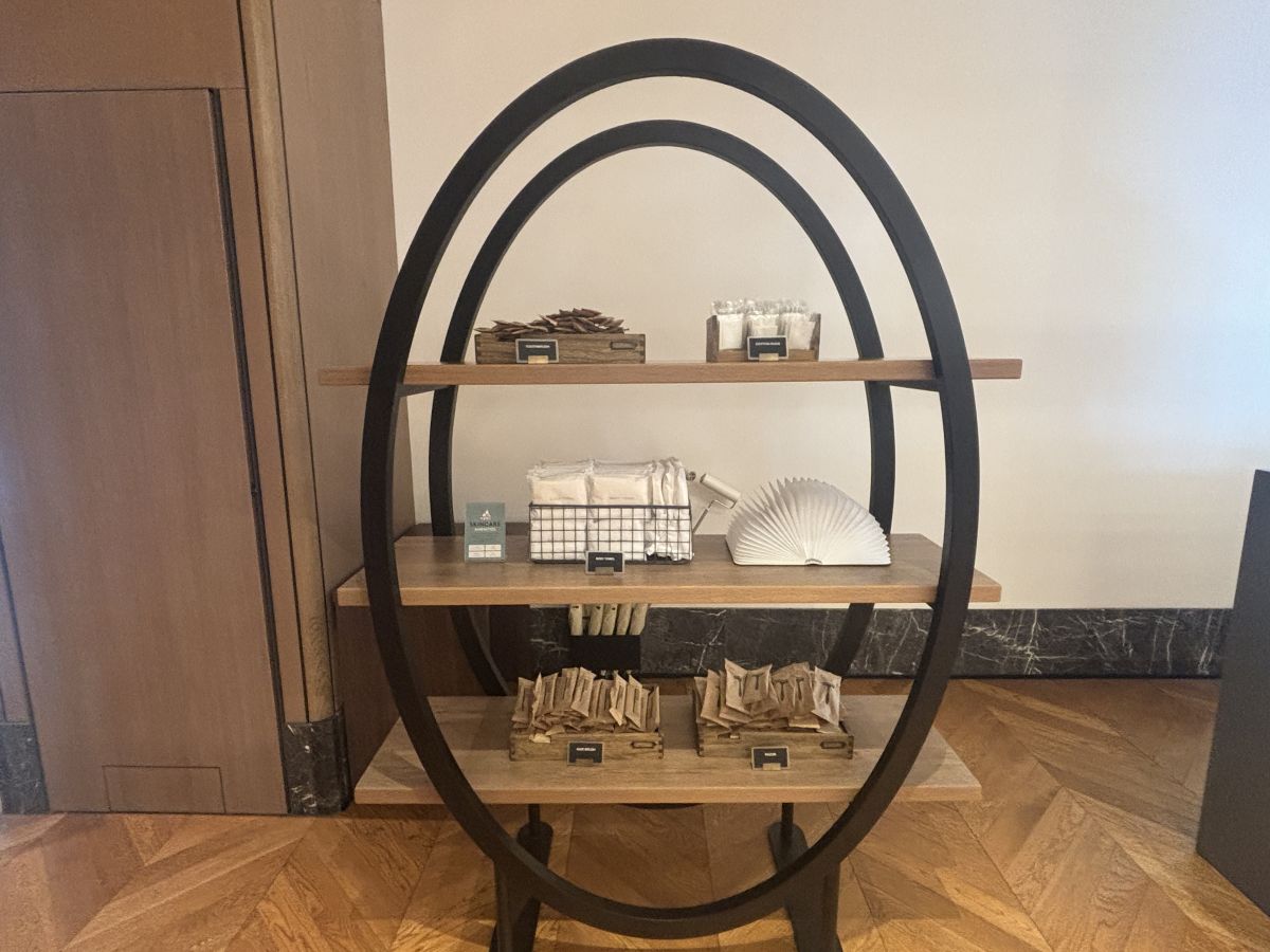 アメニティは、フロントの横にある棚から必要な分だけ持っていくセルフスタイル方式。歯ブラシやボディタオル、髭剃りなど、スタンダードなものはひととおり揃っています。