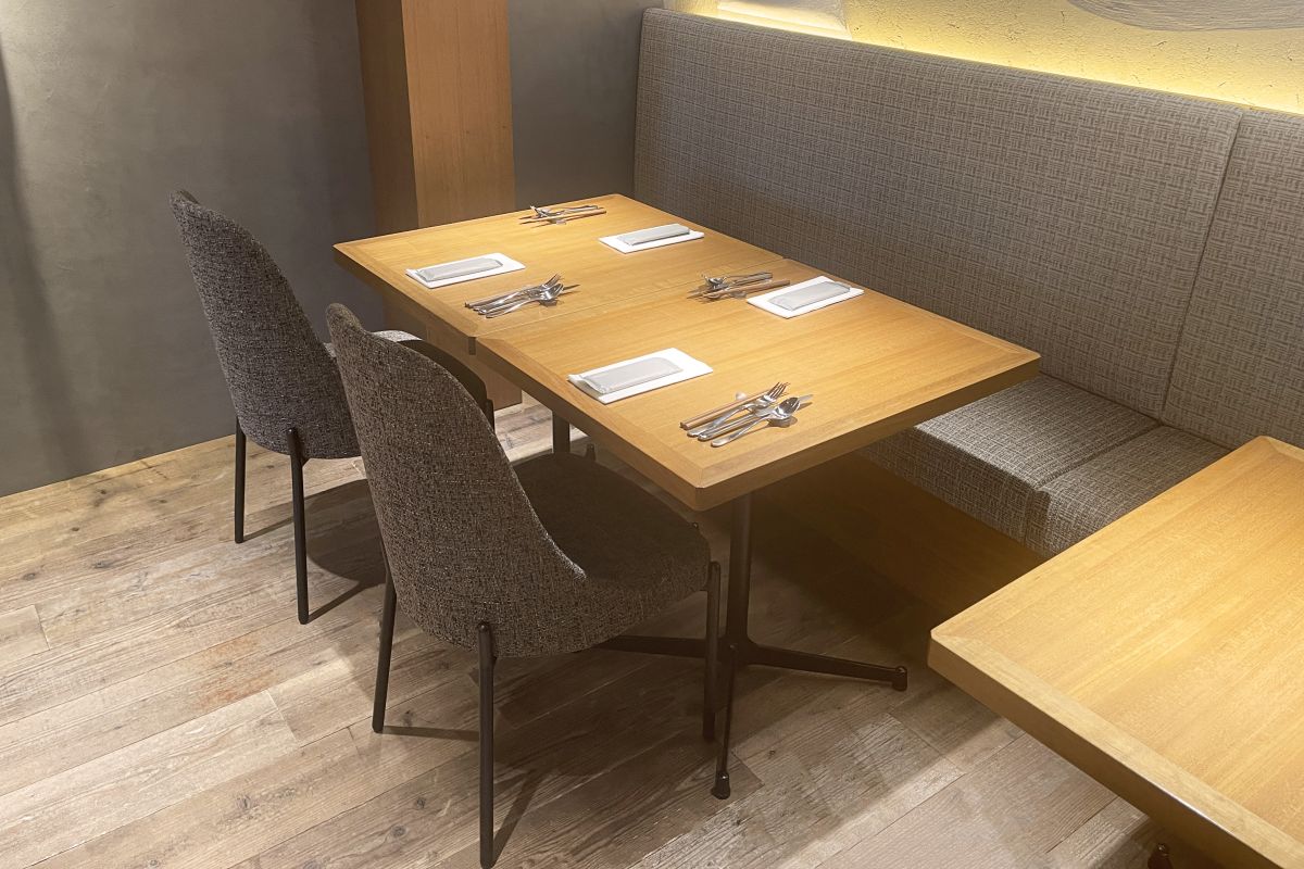 上品なグレーを基調とした席はランチやディナー、女子会にもぴったり。