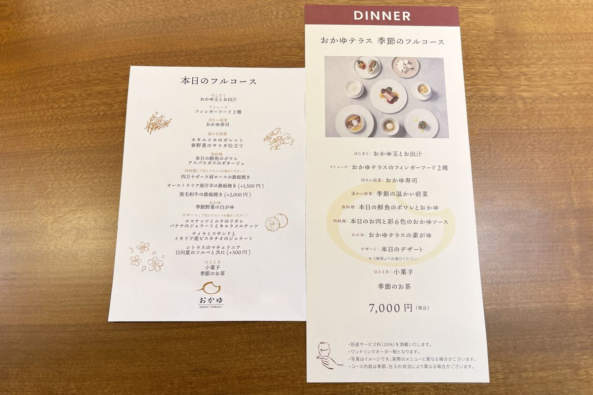 コース内容は仕入れ状況により異なる場合があり、今回紹介する写真やメニューは一例となります。