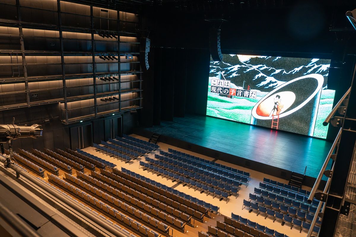 地下1〜3階にある「Box1000」は、ステージ前面にLEDを完備したシアター空間。新感覚のライブパフォーマンスや舞台、映画などを上映する予定とのこと。
