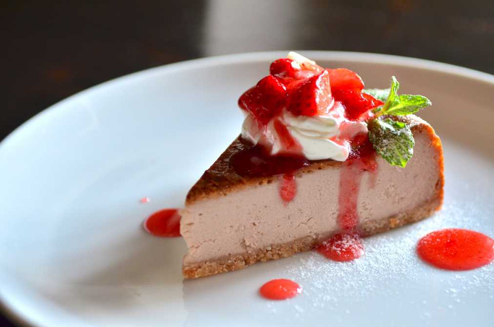 自家製スイーツも充実しています。写真は人気メニューの「苺のベイクドチーズケーキ」(600円)。イチゴの酸味と4種の濃厚なチーズ、そしてさっくりとした生地がナイスコンビネーション!