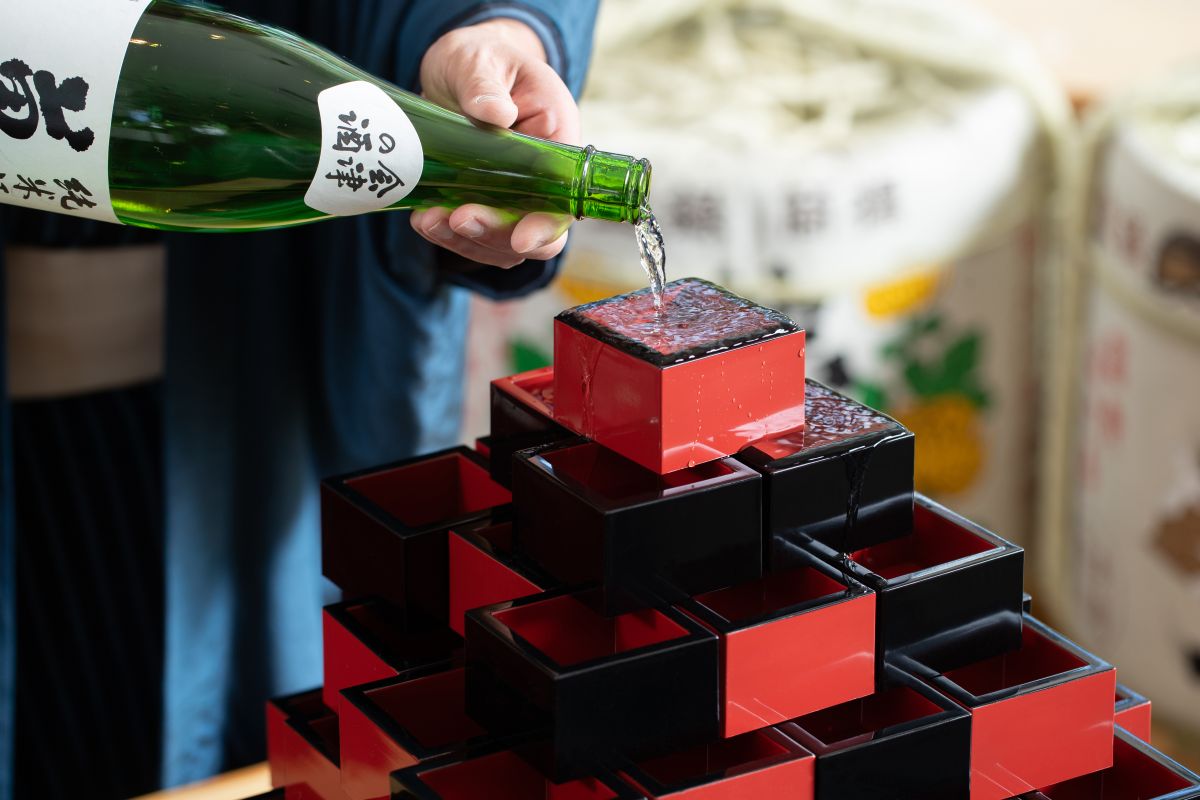 全国新酒鑑評会の結果発表日には、金賞受賞蔵を盛大にお祝い♪ 金賞受賞蔵数分の段に枡を積み重ねてつくる「枡タワー」も登場します。てっぺんから注がれた日本酒は振る舞い酒として配られ、金賞受賞の酒蔵を乾杯にてお祝いします。結果発表日は例年5月下旬。参加は無料なので、当日宿泊していたら参加してみては?