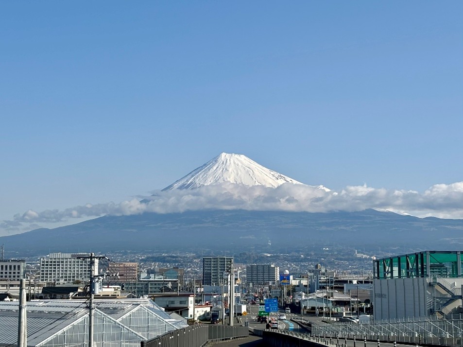 階段を上がると、富士山の全景を望む景色を眺めることができます。富士山と富士市の町並みを一望していると、富士山とともに営まれた生活が想像されます。こんな景色を毎日眺められるなんて…素敵ですよね。