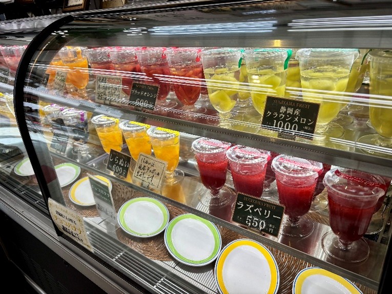 ショーケースにはたくさんの種類のフルーツゼリーが並んでいてとても華やか。