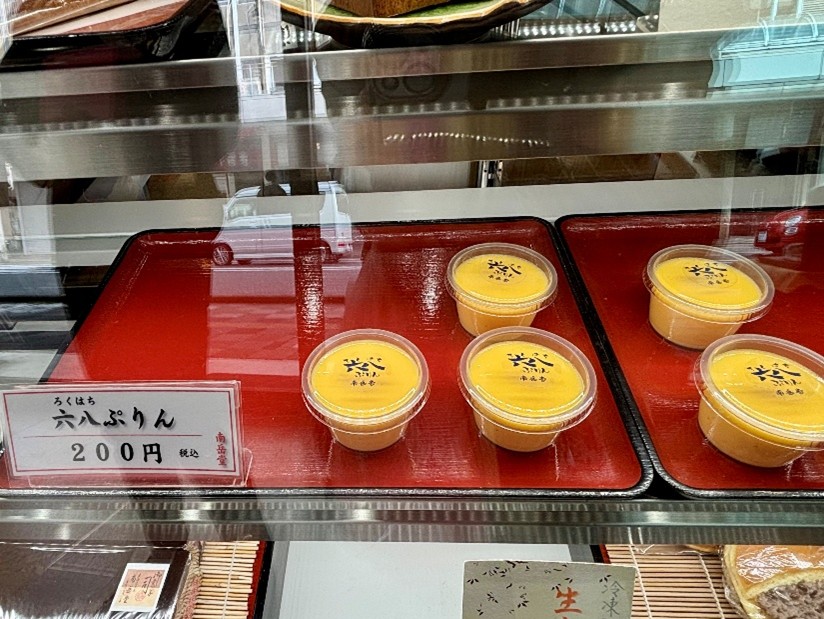 六八ぷりんはなんと1個200円と、とてもお手頃です。卵と牛乳を6:8の分量で作られていることから由来し、和三盆糖を加えたなめらかな口あたりです。