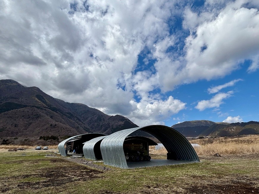 そんな場所に富士山ワイナリーはあります。広大な自然を背景に、特徴的な外観が目を惹きます。あいにくの天気で富士山は見えませんでしたが、目の前に広がる自然の中で風を浴びるだけですがすがしい気持ちになります。