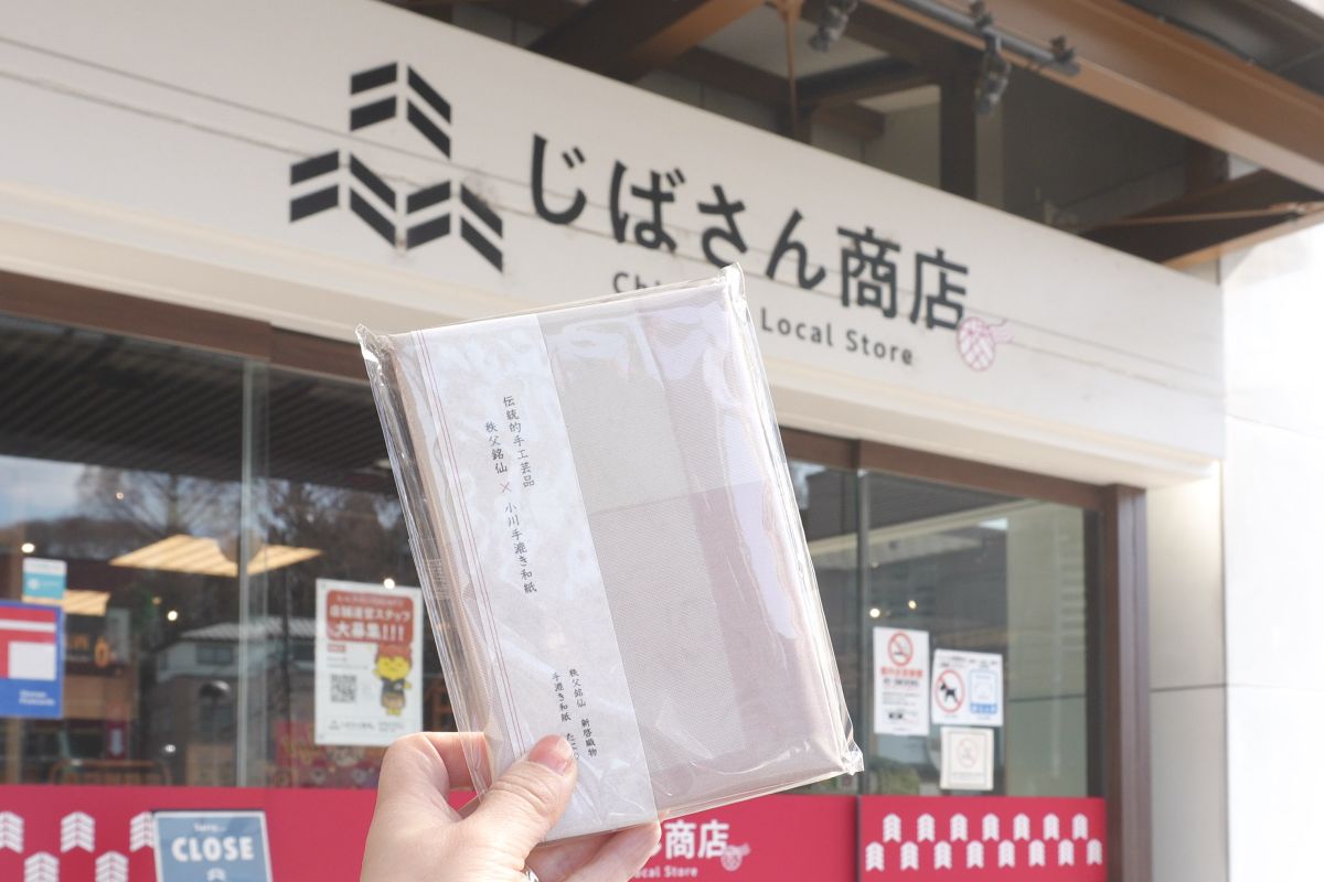 西武秩父駅に降り立ち、最初に向かったのは「じばさん商店」。お目当ては地元の絹織物・秩父銘仙を纏った御朱印帳です。