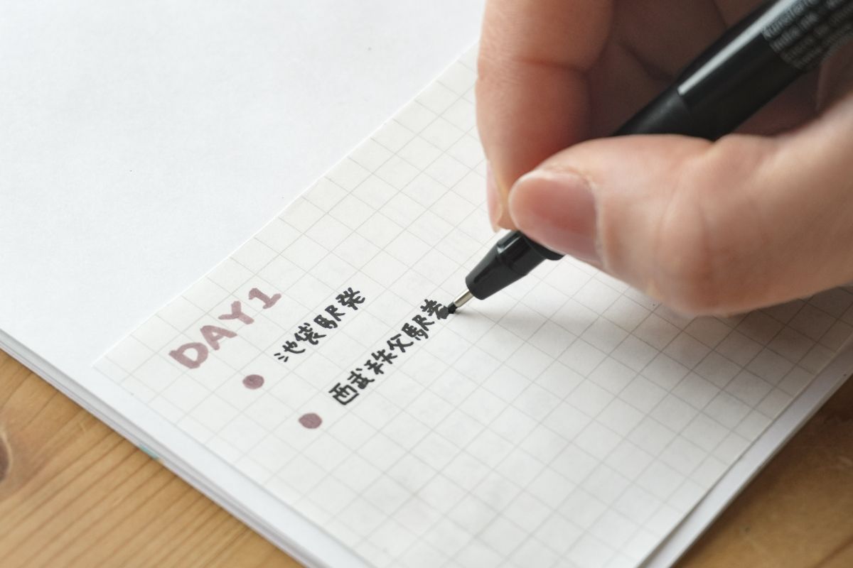 方眼のラインをガイドにすることで、文字や行間が自然と整い、手書きの温かみを残しながらも美しく見やすい旅程表に仕上がります。