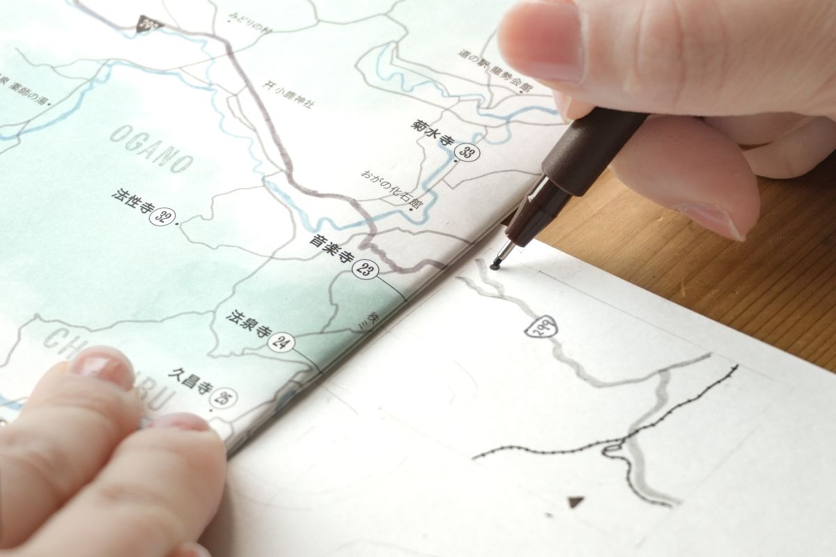 最初から情報が整理された地図を参照することで、主要な道路やランドマークだけを迷わず記すことができます。