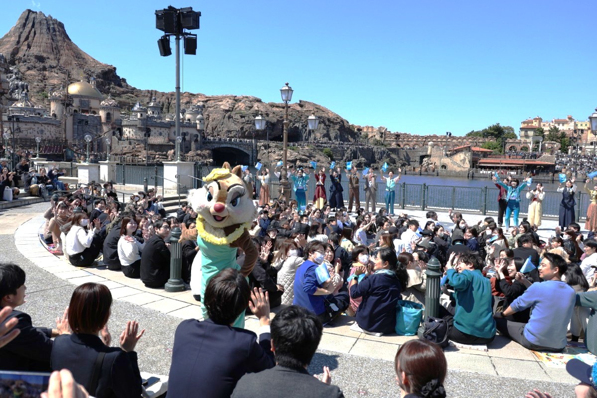 ミッキーの呼びかけで陸上にキャラクターが登場するのは3カ所。通常コスチュームで登場します。