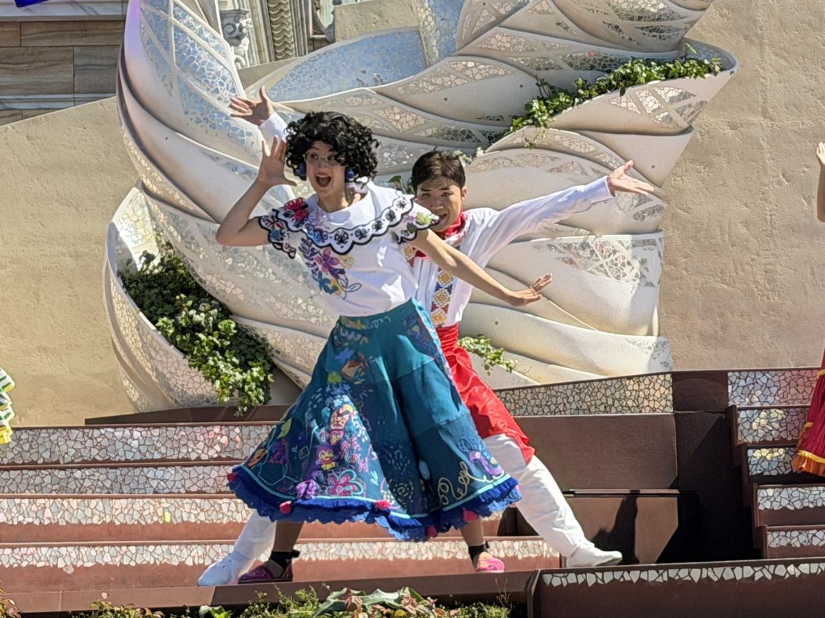 中南米シーンに登場するミラベル(『ミラベルと魔法だらけの家』)は東京ディズニーシー初登場! キュートな表情やダンスに注目です♪ ダンスの途中ではミラベルとの掛け合いも楽しめます。