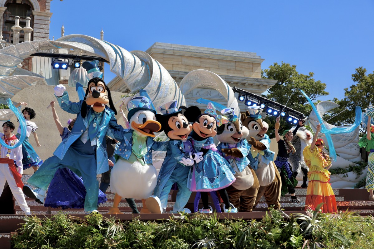 このショーでは東京ディズニーシーのテーマソングのほか、各テーマポートを象徴する音楽や周年イベントのテーマソングメドレーが流れます。いろいろな思い出が蘇ること間違いなし! キャラクターたちと一緒に、25までのカウントアップも楽しみましょう。