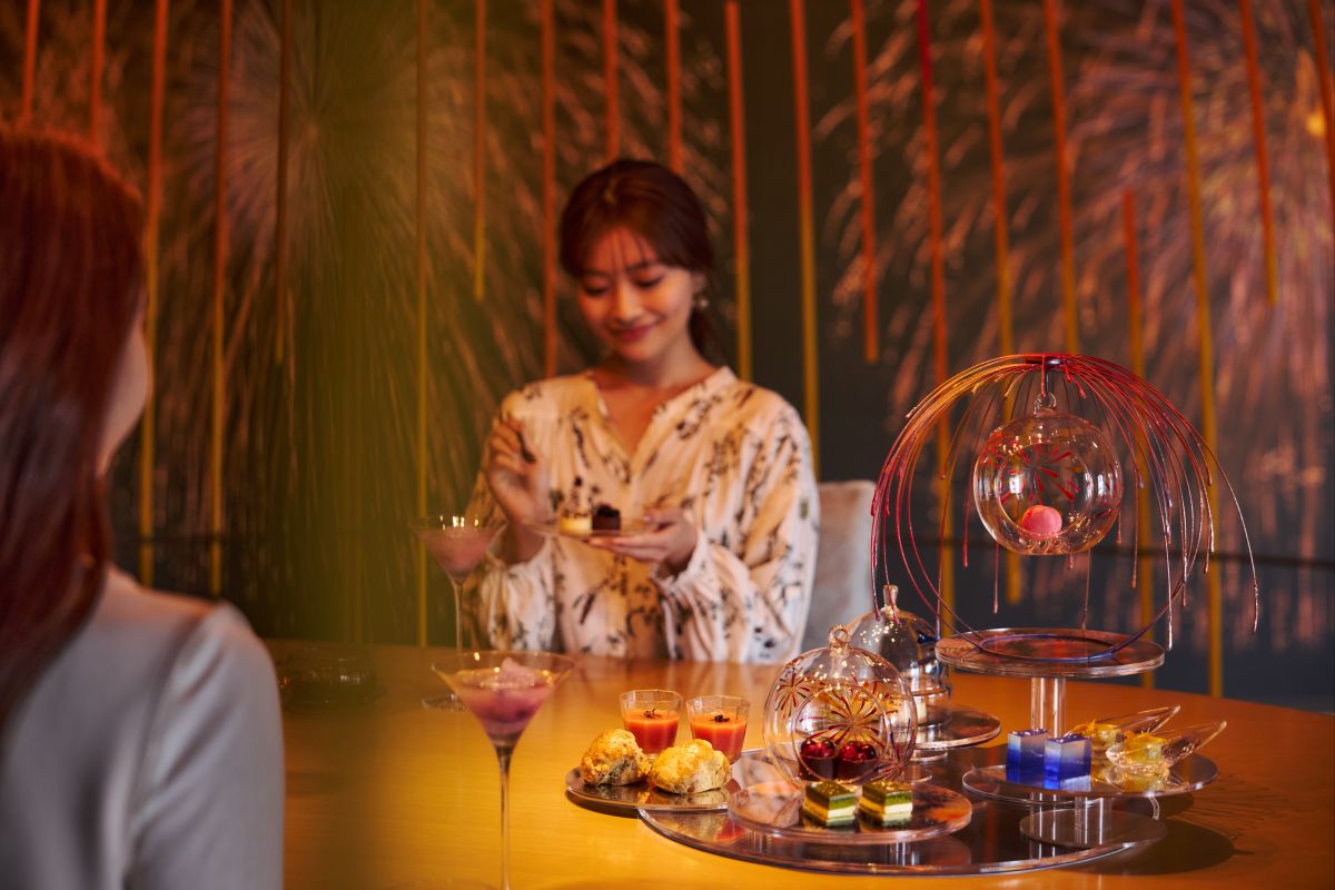「リゾナーレ熱海」の「和食ダイニング 花火」は、熱海海上花火大会をテーマにしたレストラン。まるで夜空の花火に包まれているかのような空間デザインが特徴で、華やかに彩られた空間で食事を楽しむことができます。そんなレストランで、2026年6月1日(月)〜9月30日(水)の期間、花火をテーマにしたアフタヌーンティーが味わえちゃいます!