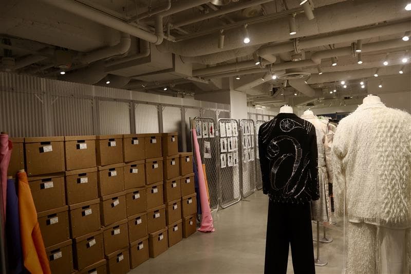 「Kis-My-Ft2 : The Couture」は、そんな衣装制作へのこだわりを感じられるようなアトリエを演出した空間。未公開デザイン資料や今回のために改めて着用した写真など、15年の衣装を前期・後期に分けて計48点を展示しています! 衣装だけでなく、ライブ映像鑑賞空間や本展開催に合わせて制作された5月26日(火)より各音楽配信サービスで配信される「Couture」の先行視聴エリア、さらには魅力的なグッズも!