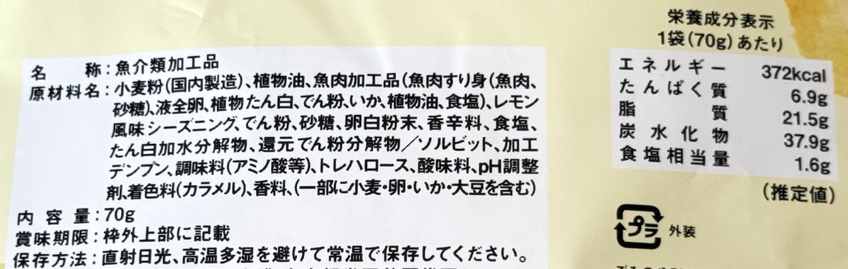 ビールのおつまみとして定番ですが、そのいか天をレモン味で仕上げたのが「もへじ れもんいか天」(70g)321円。