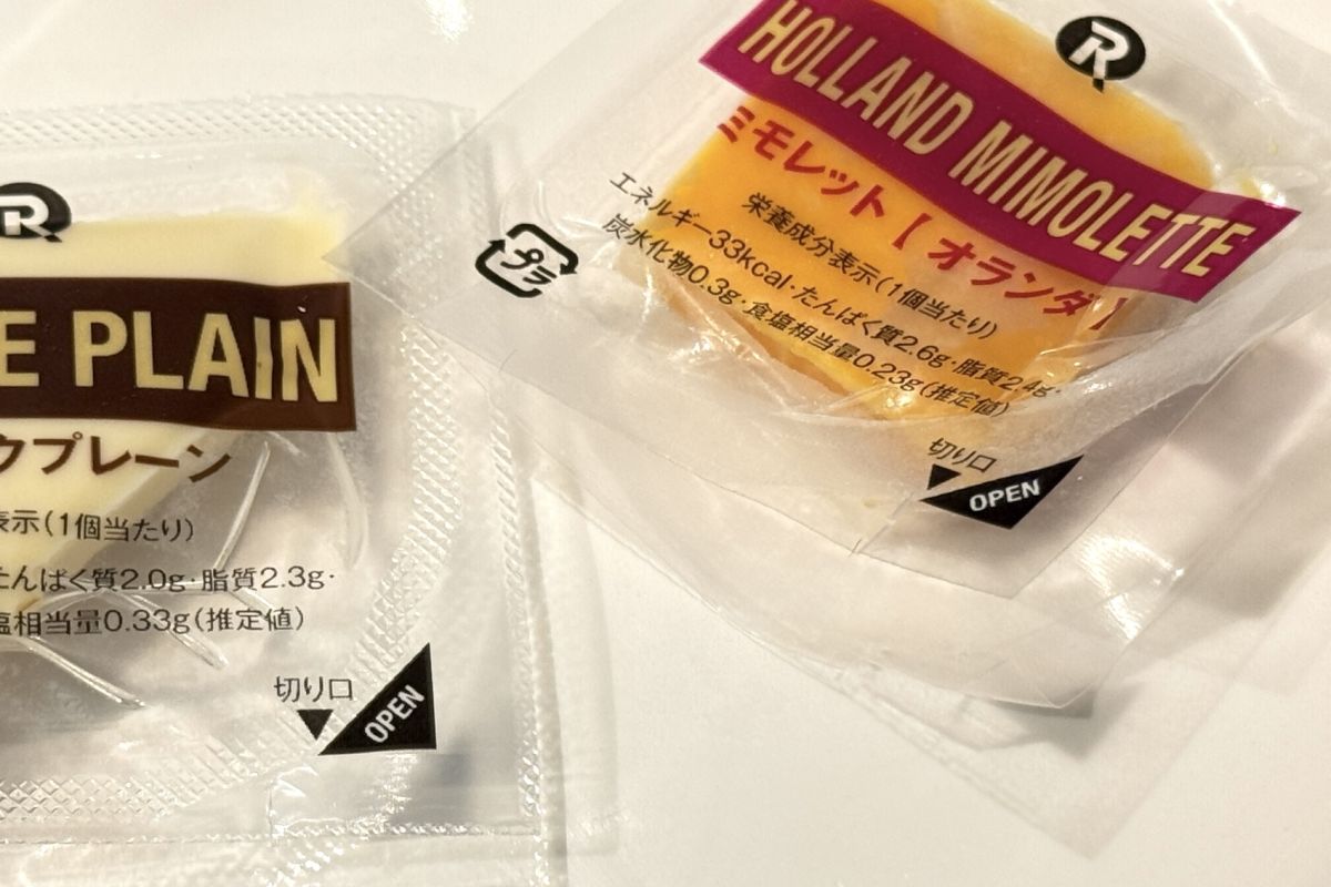 ひと口サイズの個包装になっていて、パッケージのひとつずつに、チーズの名前とカロリー、栄養成分が記載されているのも親切ですね。
