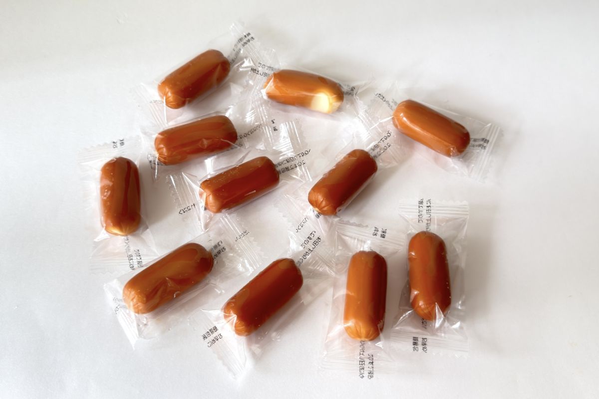 ひとつひとつ個包装されていて、見た目はまるで小さなウインナーです。