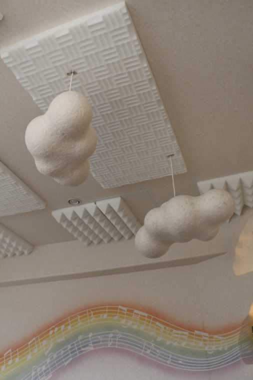 この壁を背景に「カントコトロ」を置いて写真を撮れば、雲がメロディーを奏でているようなファンタジックな1枚に!