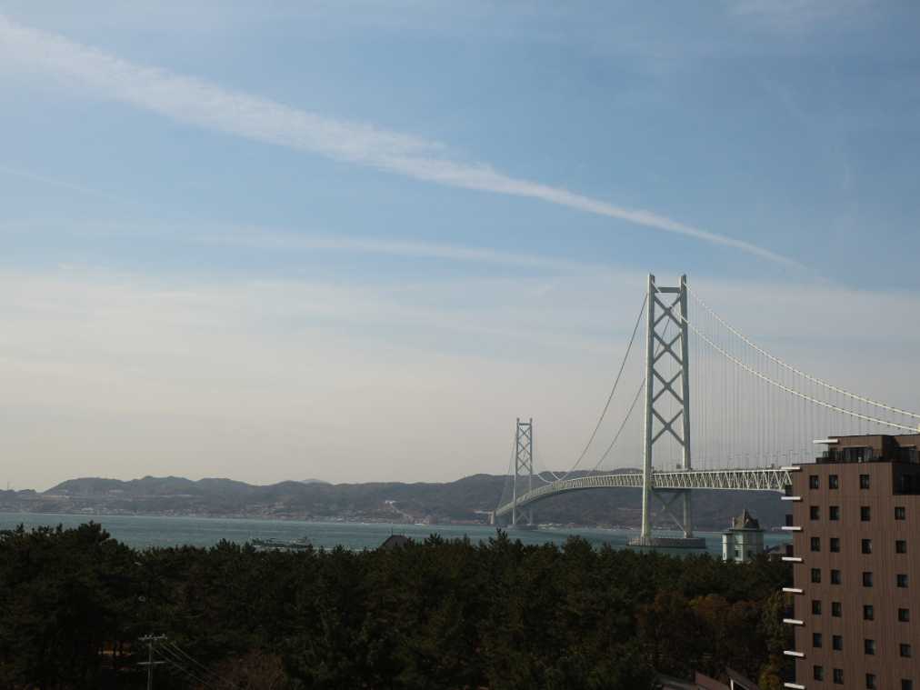 窓の外に広がるのは、緑と海、そして「明石海峡大橋」。晴れた日には淡路島まで見えます。