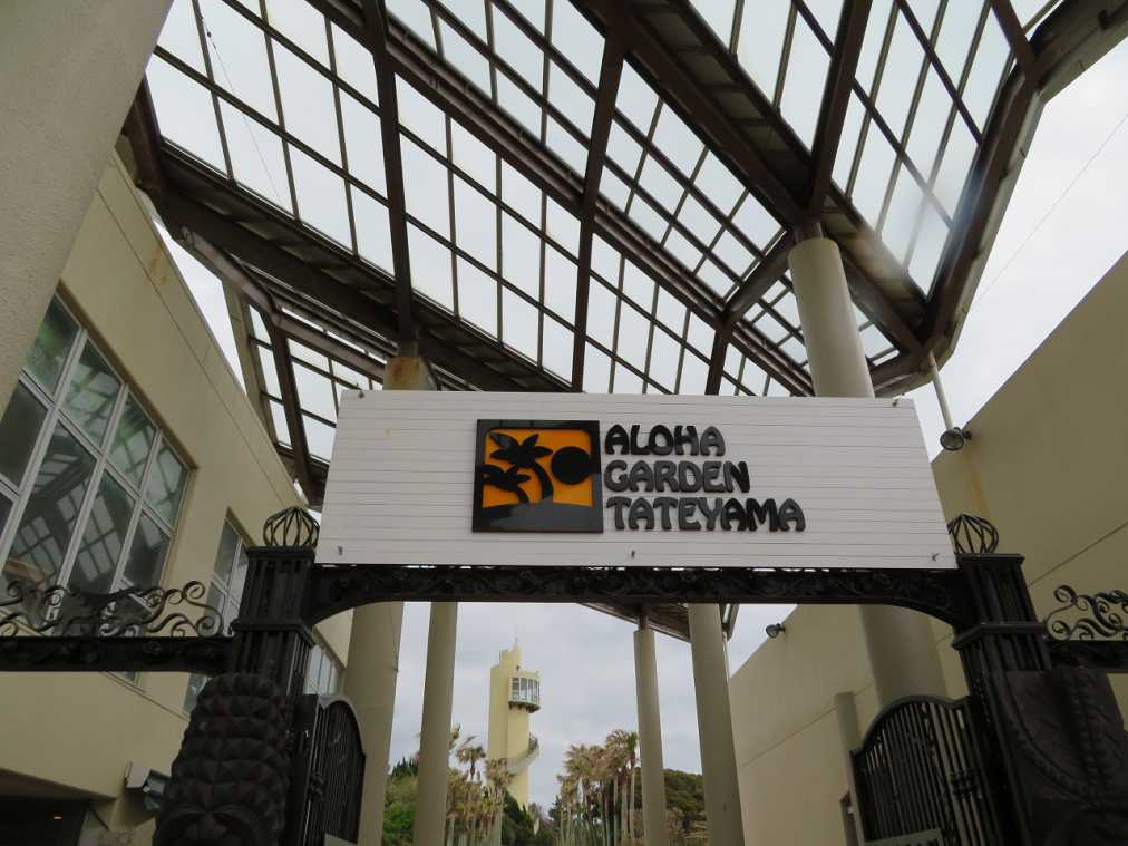 海岸線の絶景を楽しめる国道257号線、通称「房総フラワーライン」を走行中、左手に見えてくるのがアロハガーデンたてやまです。写真中央にある「アロハタワー」が道路からの目印。