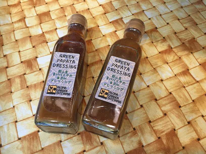 アロハガーデンで採れた果物の加工品やハワイのお土産・雑貨を買えるお店も並んでいます。そこで見つけたのがこちら。パパイヤの無添加ドレッシング!ビタミンCやβ-カロテンを含むため美容にも良いそう。