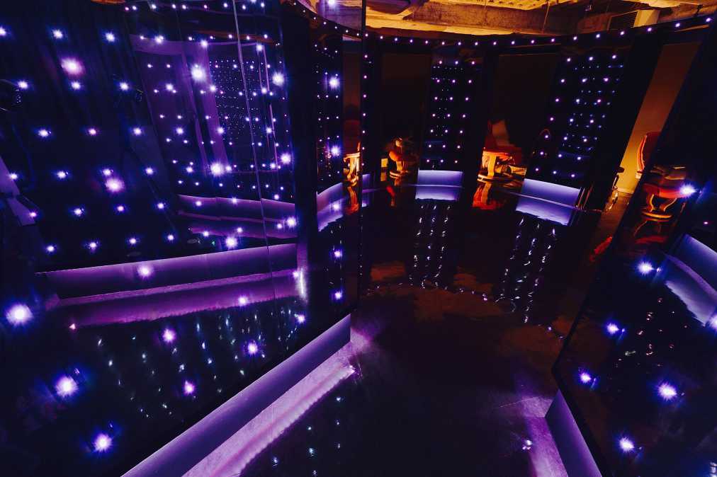 案内されてびっくり!ここは、4月にオープンしたばかりの「無重力」がテーマの新フロア。まるで宇宙に来てしまったかのようで、個室のソファに座るまで自分の足で歩いているのか、浮いているのかわからない不思議な感覚がします。
