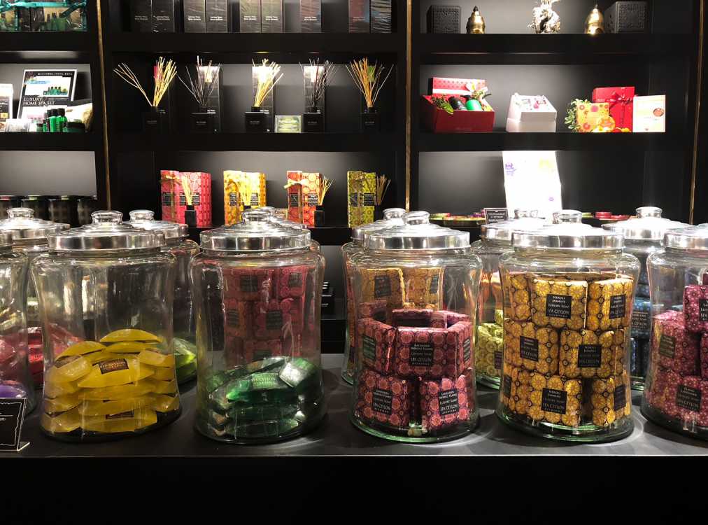 店内には、ボディウォッシュ、ソープ、オイル、ヘアオイル、フェイスオイルなど、アーユルヴェーダで使われる植物のエキスやオイルを使ったボディ・フェイスケアコスメがいっぱい!