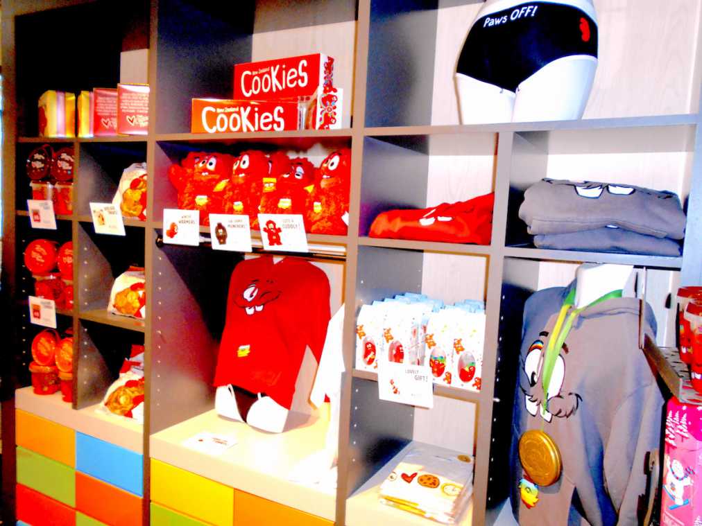 ショップではクッキーマンチャーのぬいぐるみやTシャツなどのオリジナルグッズのほか、小分けができるクッキーも販売中。また、英語で注文するとクッキーが1枚もらえるといったイベントも充実しています。